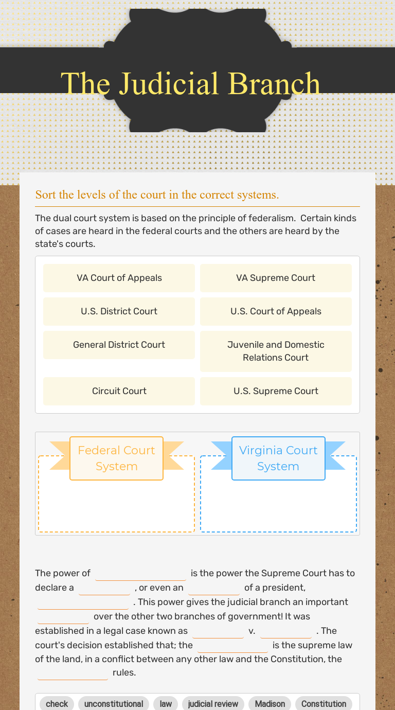 The crossword solver solves clues to crossword puzzles in the uk, usa & australia. Judicial branch worksheet answers judicial branch worksheet. View judicial branch in a flash.worksheet analysis fill (2).pdf from law misc at central high school. Kids will be better trained to focus. In this webquest, students look at all levels of both the state and federal court systems. Judicial branch in a flash worksheet answers www judicial branch in a flash worksheet answers www judicial branch in a flash name untitled 413 warm up list the objects and people depicted in the judicial branch in a flashworksheet analysis fillpdf warm up in google doc list everything you know about. Judicial branch in a flash 100 questions for u.s. Taking a case through the court system is like an. Students will be able to: Judicial branch in a flash! Judicial branch worksheet answers judicial branch in a flash icivics. Gallery of judicial branch in a flash worksheet answers. Judicial branch in a flash.worksheet analysis fill … , the judicial branch is one of the 3 in our government, but is responsible for the administration.hope that helps!!